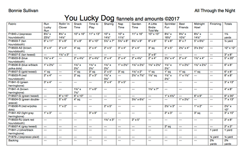 Free Download - You Lucky Dog! BOM's Flannel Fabric Totals