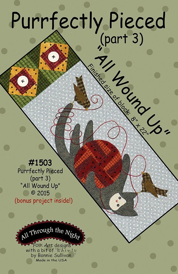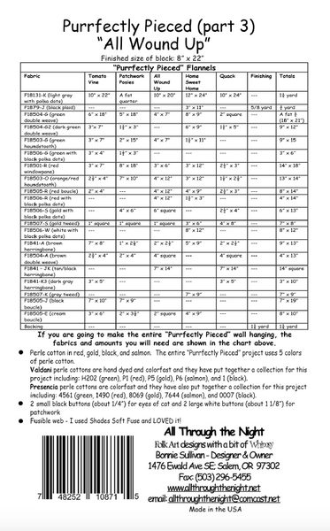 The 5 patterns combine to make a 33"x37" wall hanging featuring cats in the sewing room.