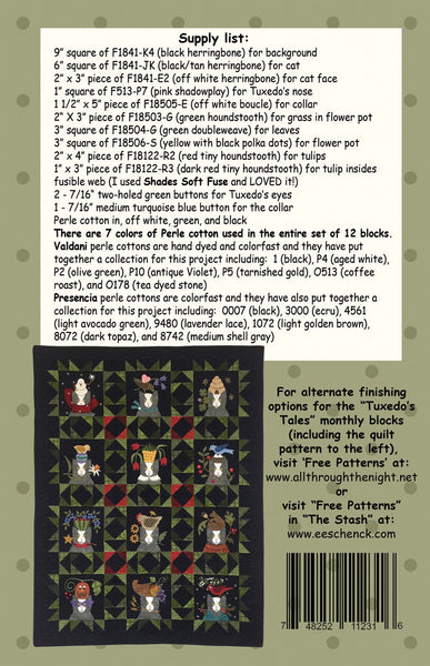 Part 5 of a 12 part Block of the Month featuring Tuxedo with peculiar things on his head - silly cat!