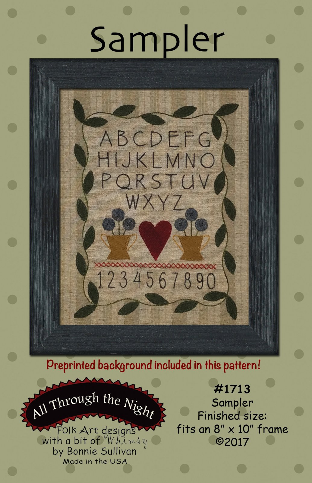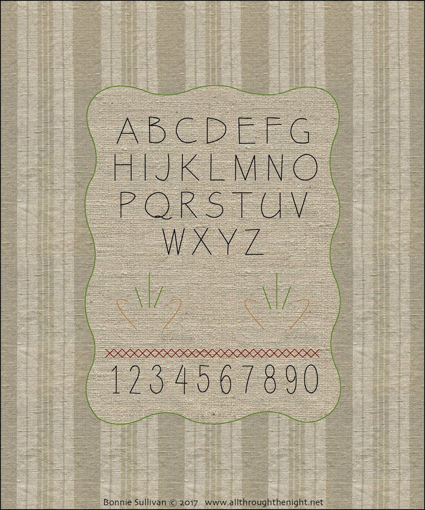 Pattern includes preprinted background fabric. Finished project fits a standard 8" x 10" frame. All you need to add is a little applique and embroidery. The embroidery lines are printed on - no tracing needed!