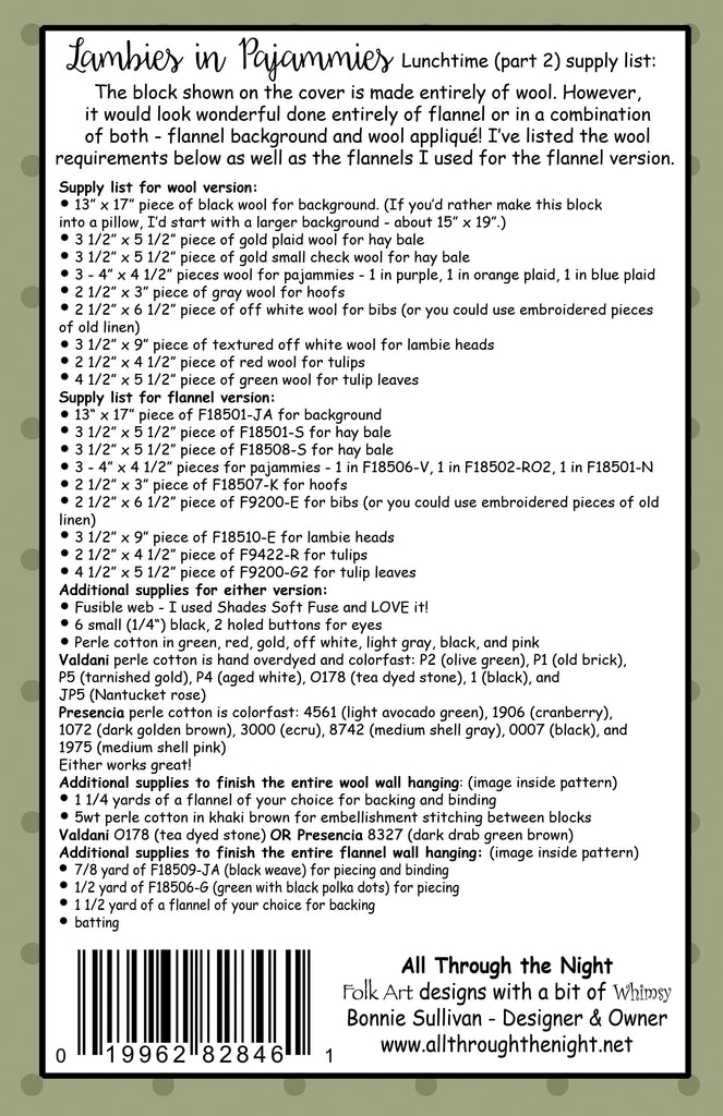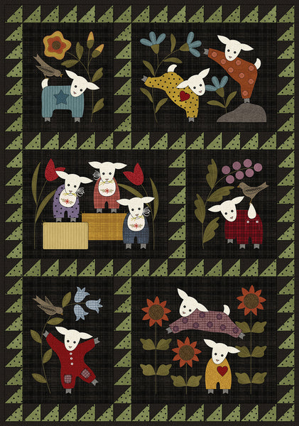 Combine all 5 Lambies in Pajammies blocks to make a 26" x 38" wall hanging. Pattern also includes directions to make a larger flannel version with patchwork sashing and borders that measures 32" x 46".