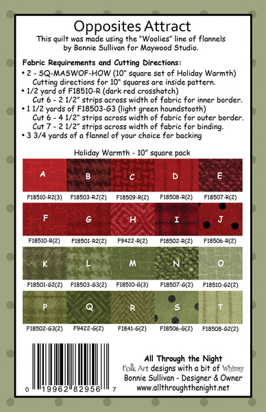 This quilt was made using the Woolies line of flannels by Bonnie Sullivan for Maywood Studio. Yardages shown are for flannel that has not been pre-washed.