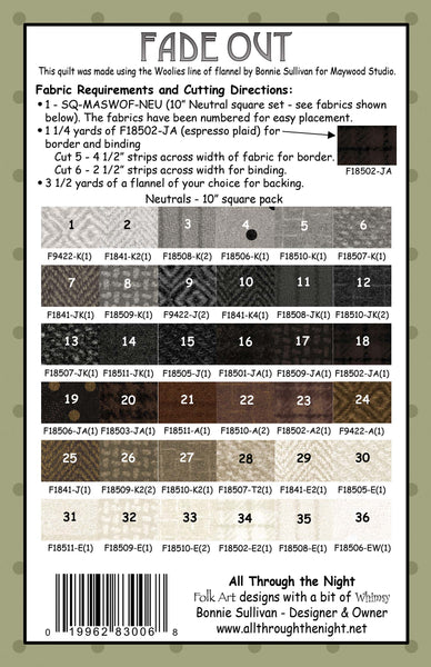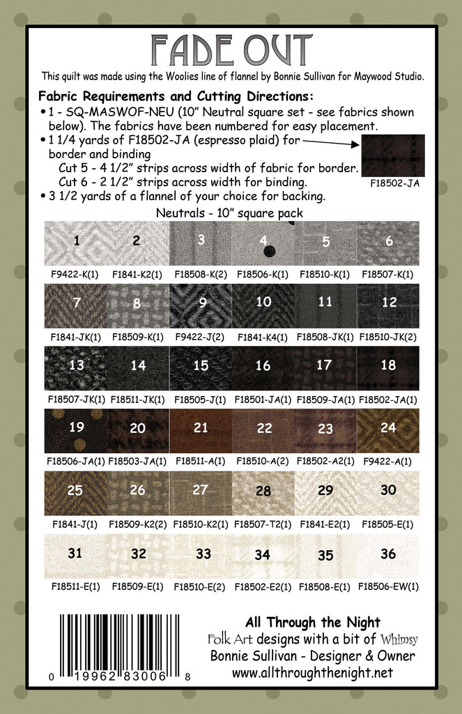 This quilt was made using the Woolies line of flannels by Bonnie Sullivan for Maywood Studio. Yardages shown are for flannel that has not been pre-washed.