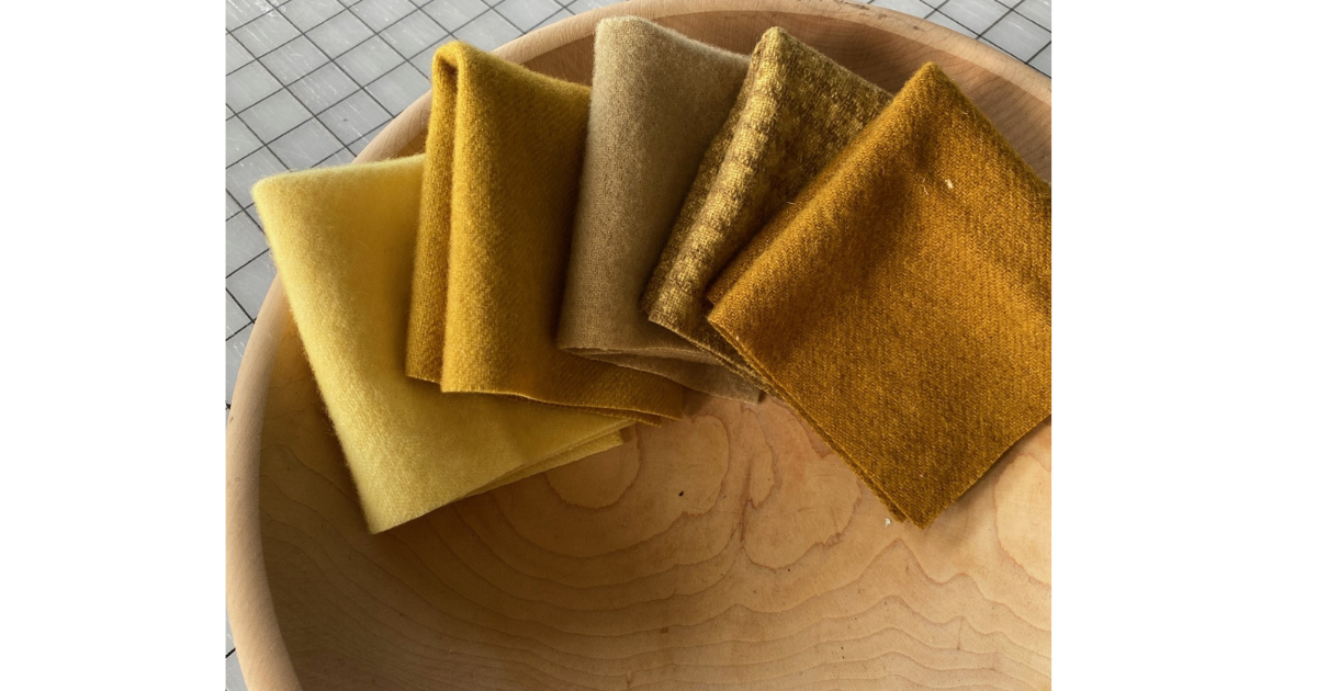 5- 8" pieces of hand dyed wool with one textured mixed in